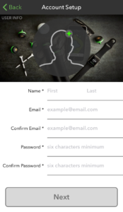 名前、メールアドレス(確認で2回)、パスワード(確認で2回)、誕生日、右打ちor左打ち、男性or女性を入力し、Nextをタップ